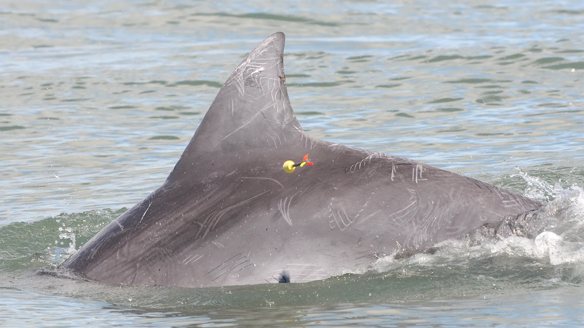 Photo-identification is an effective tool for studying the population ecology of aquatic mammals. It is used to identify individuals through photographs of body parts that exhibit unique characteristics. For Lahille's bottlenose dolphin, the focus is on its dorsal fin, where permanent marks such as cuts, deformities, pigmentation patterns, scratches, and spots are typically visible, aiding in individual identification.